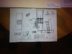 Da subito ho pensato ai percorsi narrativi del romanzo come a dei palazzi che confluissero in un unico spazio. Inizialmente ho immaginato gli edifici in maniera verticale, slanciati verso l’alto. Questa scelta rendeva problematica la costruzione di una terza via, trasparente che attraversasse la storia. Ribaltando gli edifici, sul piano orizzontale, ha dato profondità alla struttura, offrendomi la possibilità di pensare una terza via, scavata, che verticalmente non riuscivo ad immaginare.